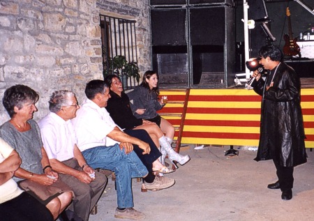 Espectáculo de humor con el showman, humorista e imitador de voces de famosos Miguel Ángel Lordán en las fiestas de la Natividad de la Virgen en Atarés (Huesca).