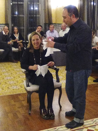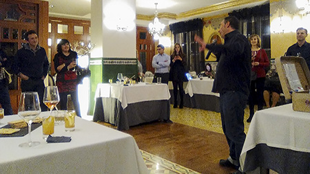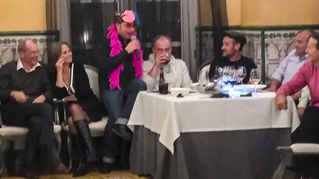 Espectáculo de humor con el showman, humorista e imitador de voces de famosos Miguel Ángel Lordán en cena de empresa de Ligüerre Resort en Barbastro (Huesca).