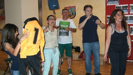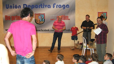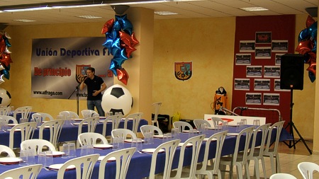 Espectáculo de humor con el showman, humorista e imitador de voces de famosos Miguel Ángel Lordán y el cantante de versiones musicales Arturo Portolés en la cena de la Unión Deportiva Fraga en Fraga (Huesca).