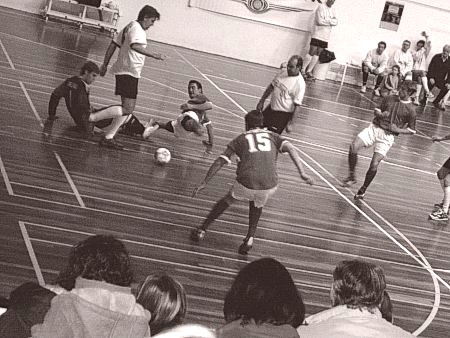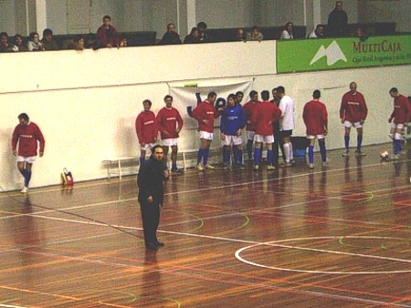 Espectáculo de humor con el showman, humorista e imitador de voces de famosos Miguel Ángel Lordán en el 3º Partido de Futbol Sala entre toreros y periodistas en Huesca.