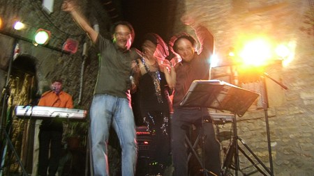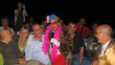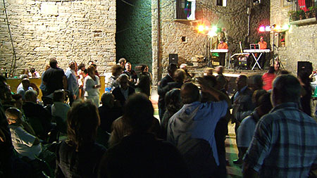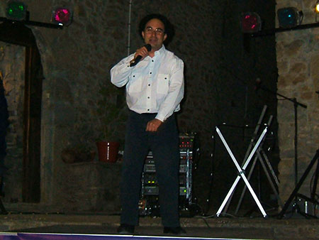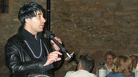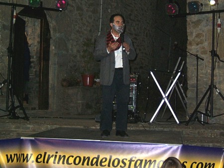 Espectáculo de humor con el showman, humorista e imitador de voces de famosos Miguel Ángel Lordán en la Fiesta de la Asociación Amigos del Castillo en Troncedo (Huesca).