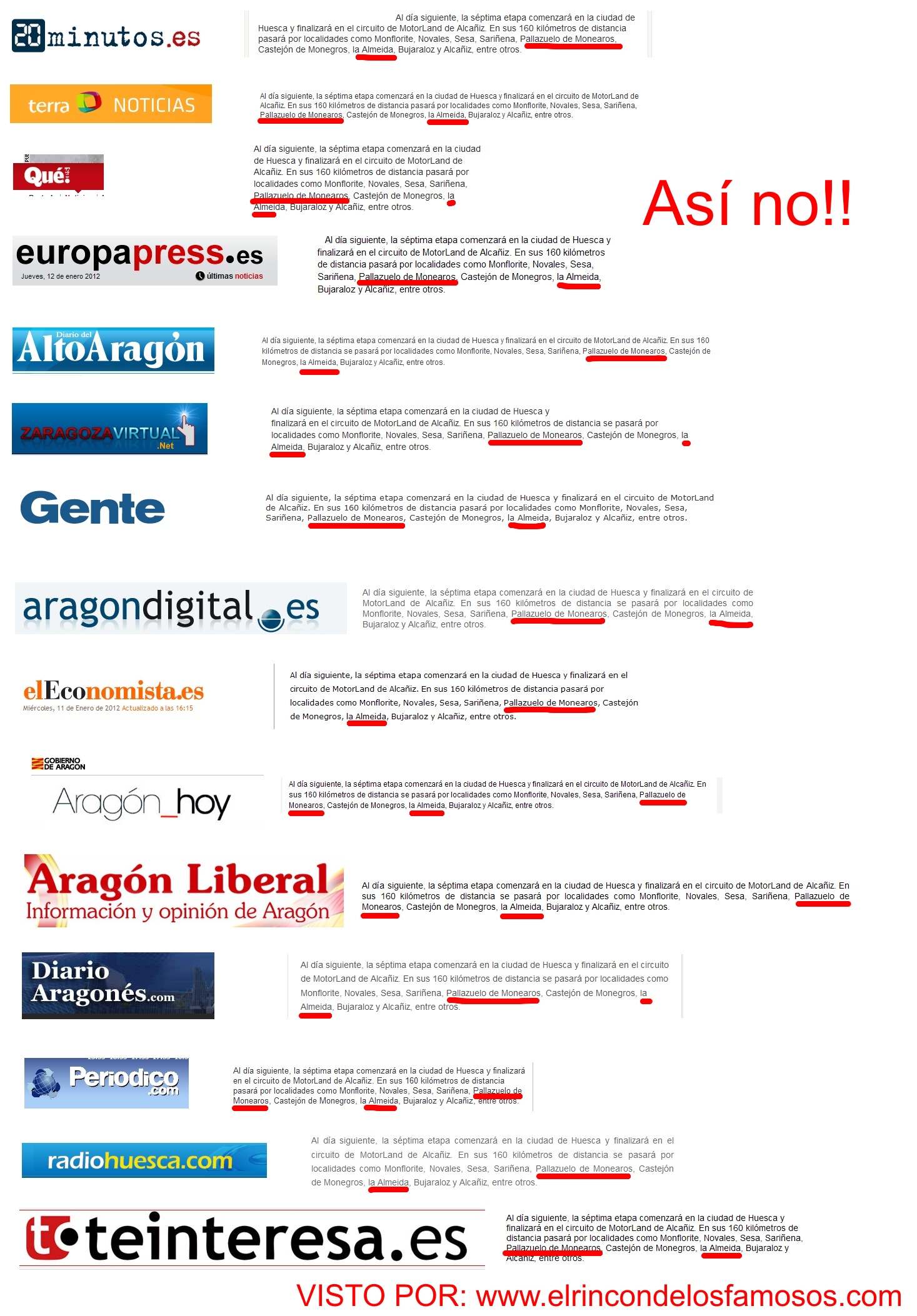 - LORDÁN, M.A. Pallazuelo de Monearos y La Almeida. Periodismo digital: la cultura del «copiar y pegar». (2012, 13 de enero). El rincón de los famosos. Yo escribo. Sociedad.